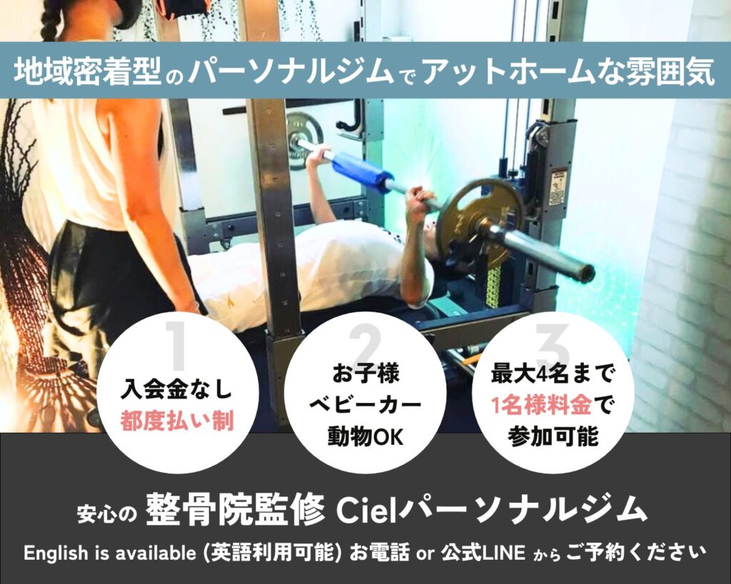 Cielパーソナルジム西新宿五丁目店は、整骨院監修のパーソナルジムです。専門トレーニングと整体技術を組み合わせ、一人ひとりに合わせた健康的な身体づくりをサポートします。